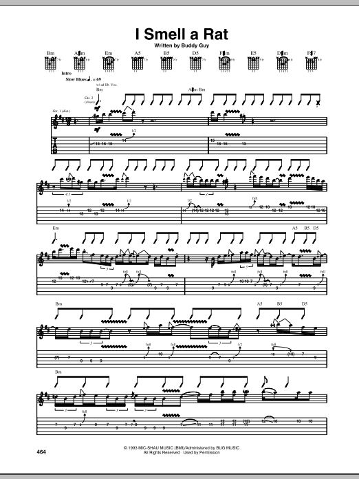 Download or print Buddy Guy I Smell A Rat sheet music, chords and digital score arranged for Guitar Tab. This Blues score includes 18 page(s).