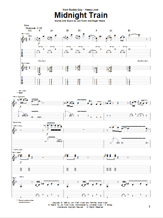 Download or print Buddy Guy Midnight Train sheet music, chords and digital score arranged for Guitar Tab. This Blues score includes 10 page(s).