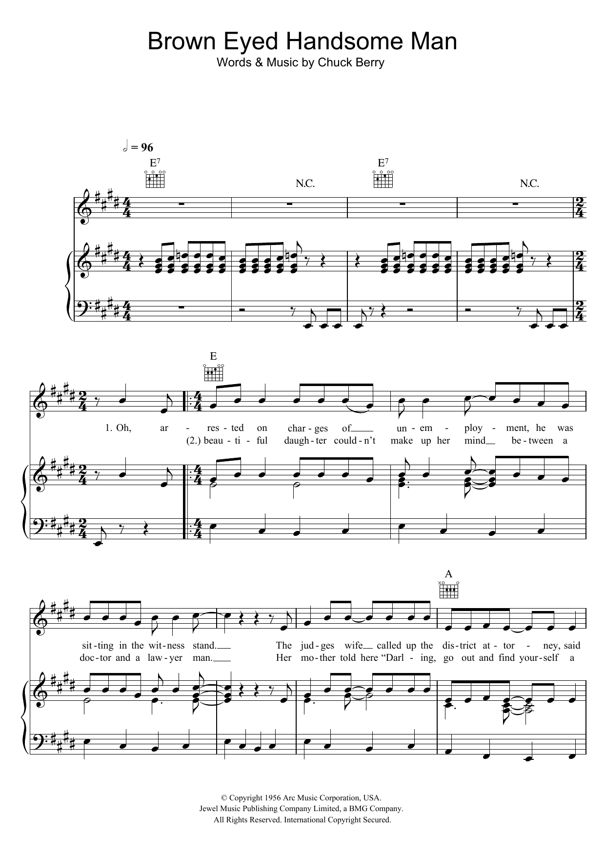Download or print Buddy Holly Brown Eyed Handsome Man sheet music, chords and digital score arranged for Piano, Vocal & Guitar Chords. This Rock score includes 4 page(s).