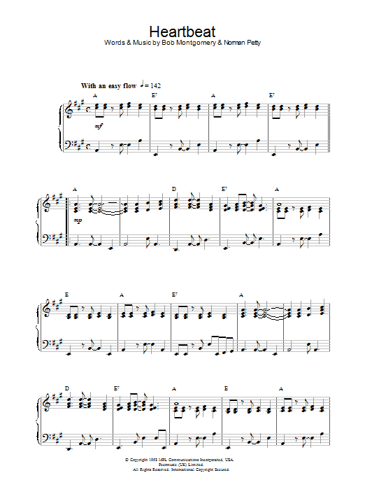 Download or print Buddy Holly Heartbeat sheet music, chords and digital score arranged for Piano, Vocal & Guitar Chords. This Pop score includes 3 page(s).