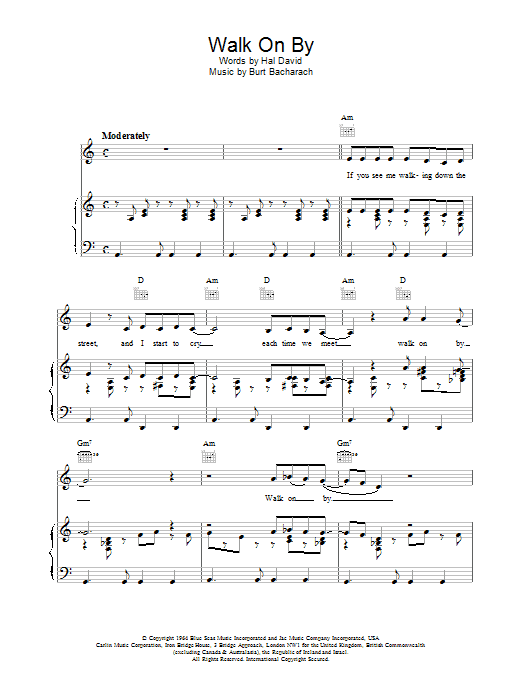 Download or print Burt Bacharach Walk On By sheet music, chords and digital score arranged for Piano Solo. This Pop score includes 3 page(s).