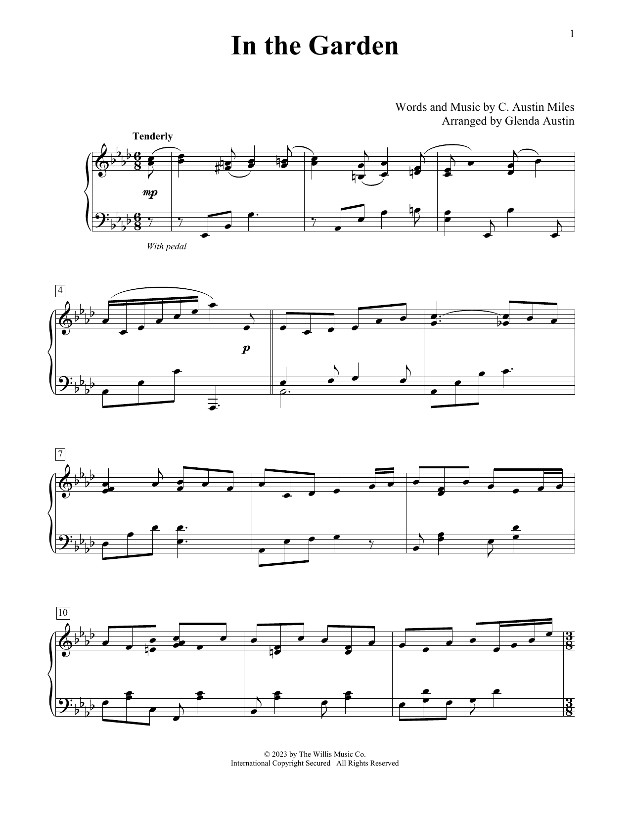 Download or print C. Austin Miles In The Garden (arr. Glenda Austin) sheet music, chords and digital score arranged for Educational Piano. This Sacred score includes 3 page(s).