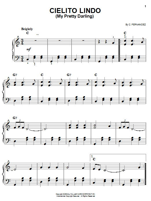 Download or print C. Fernandez Cielito Lindo (My Pretty Darling) sheet music, chords and digital score arranged for Easy Lead Sheet / Fake Book. This Folk score includes 2 page(s).