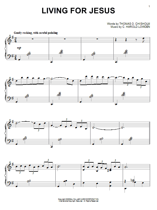 Download or print C. Harold Lowden Living For Jesus sheet music, chords and digital score arranged for Piano Solo. This Christian score includes 3 page(s).