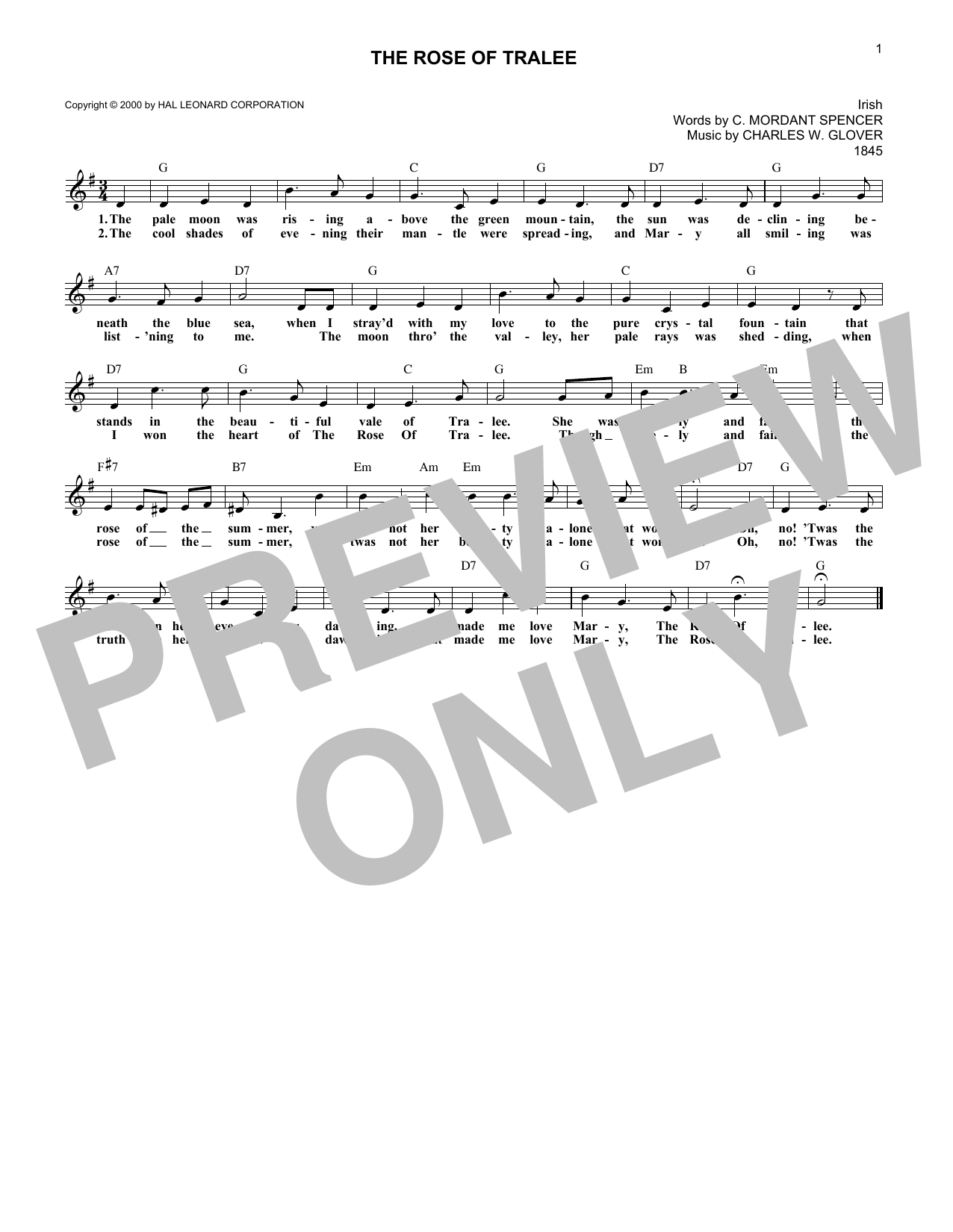 Download or print C. Mordaunt Spencer The Rose Of Tralee sheet music, chords and digital score arranged for Lead Sheet / Fake Book. This Folk score includes 1 page(s).