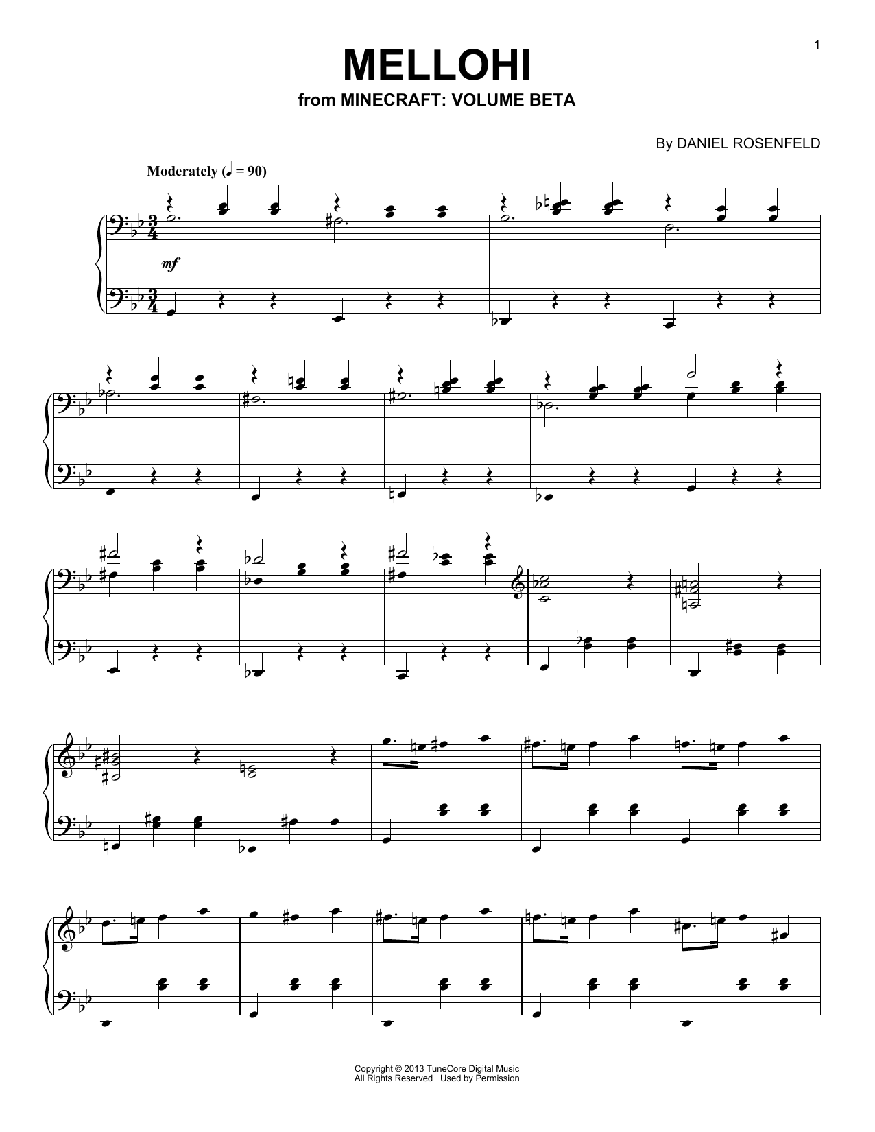 Download or print C418 Mellohi (from Minecraft) sheet music, chords and digital score arranged for Piano Solo. This Video Game score includes 2 page(s).