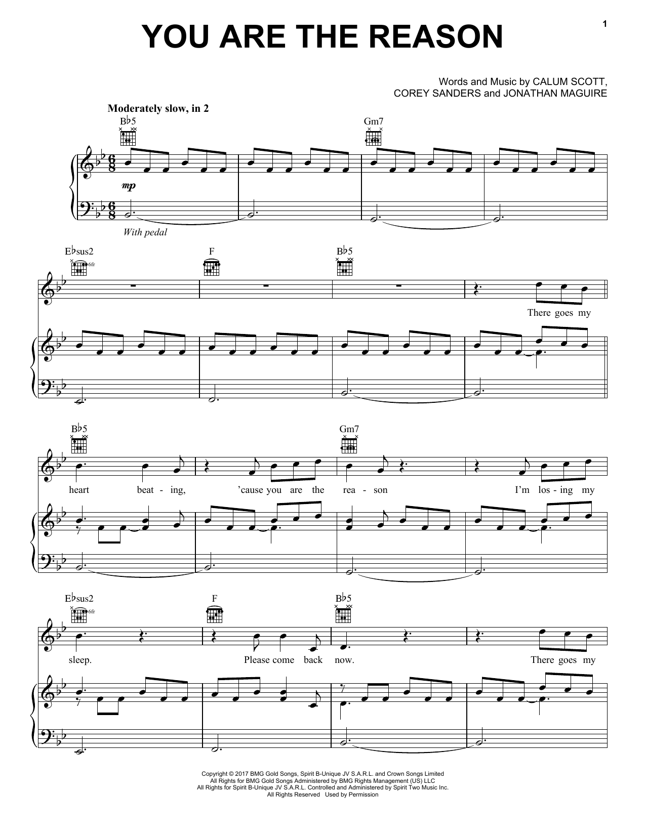 Download or print Calum Scott You Are The Reason sheet music, chords and digital score arranged for Educational Piano. This Pop score includes 2 page(s).