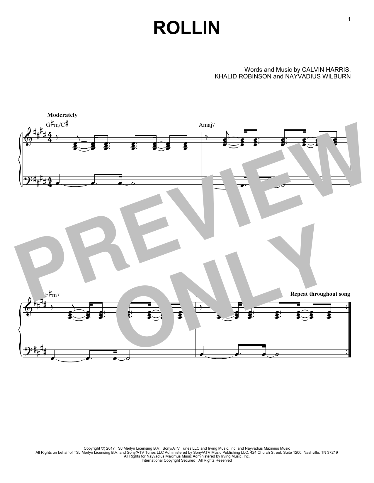 Download or print Calvin Harris feat. Future and Khalid Rollin sheet music, chords and digital score arranged for Piano Solo. This Pop score includes 1 page(s).
