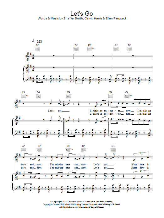 Download or print Calvin Harris featuring Ne-Yo Let's Go sheet music, chords and digital score arranged for Piano, Vocal & Guitar Chords. This Pop score includes 5 page(s).
