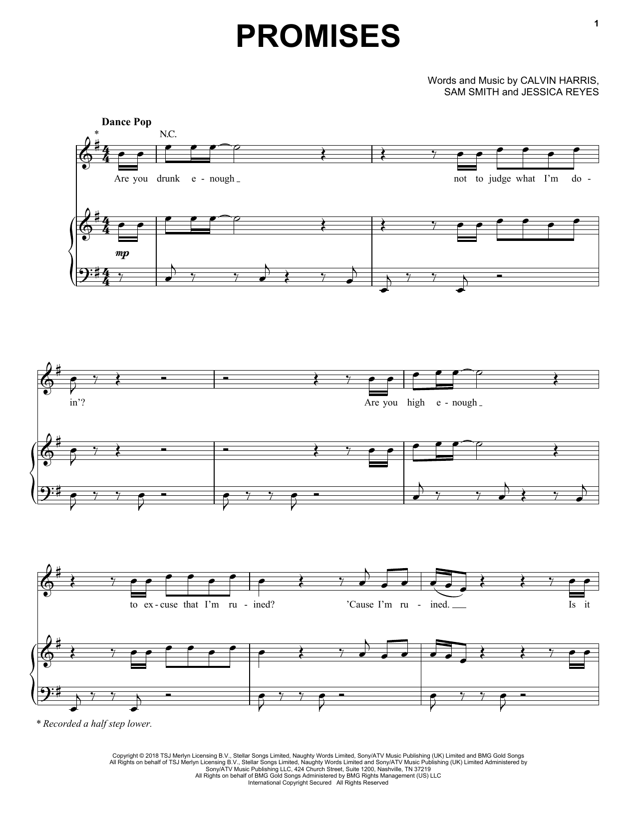 Download or print Calvin Harris Promises (Feat. Sam Smith) sheet music, chords and digital score arranged for Piano, Vocal & Guitar Chords (Right-Hand Melody). This Pop score includes 7 page(s).