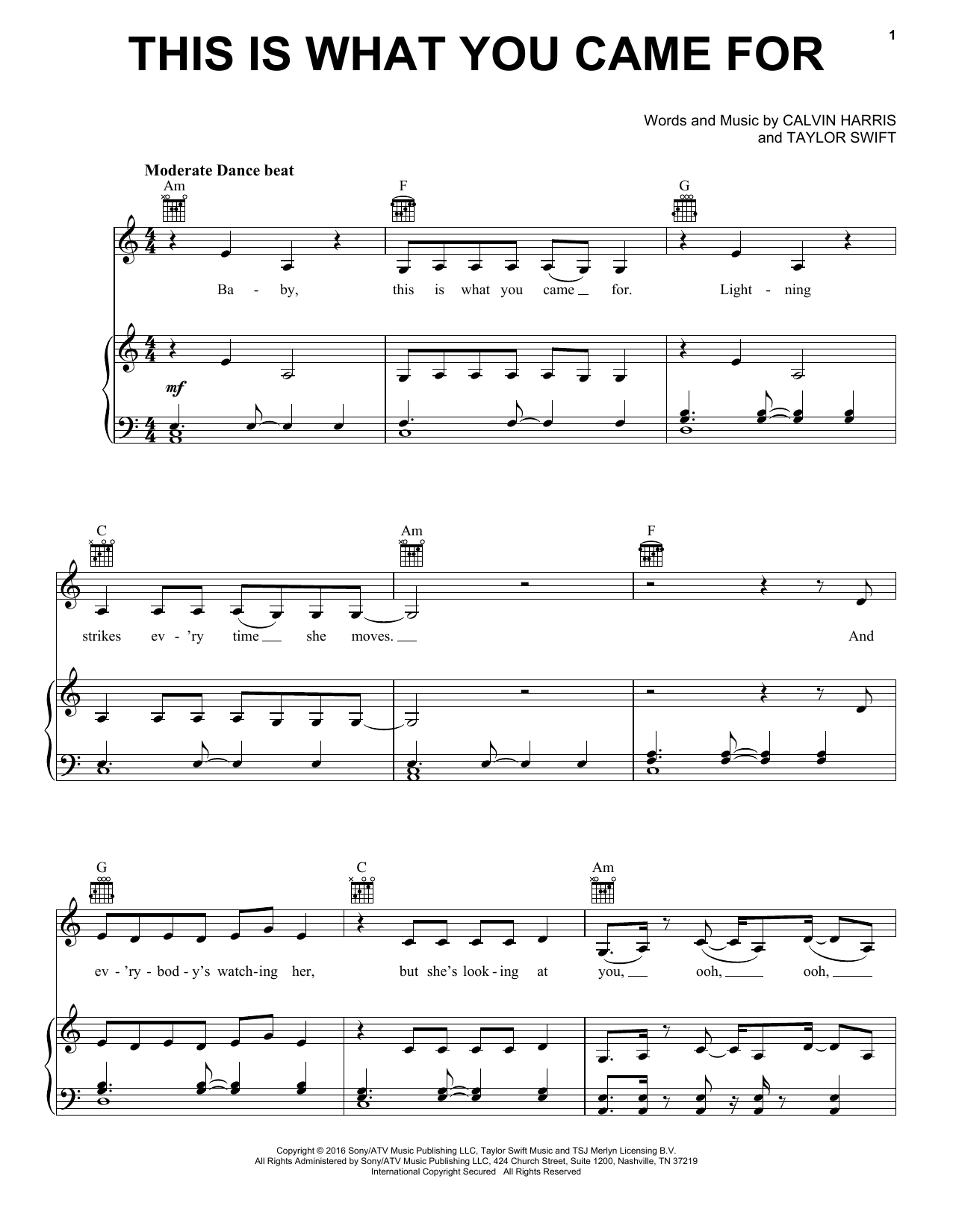 Download or print Calvin Harris This Is What You Came For (feat. Rihanna) sheet music, chords and digital score arranged for Piano, Vocal & Guitar Chords (Right-Hand Melody). This Pop score includes 8 page(s).