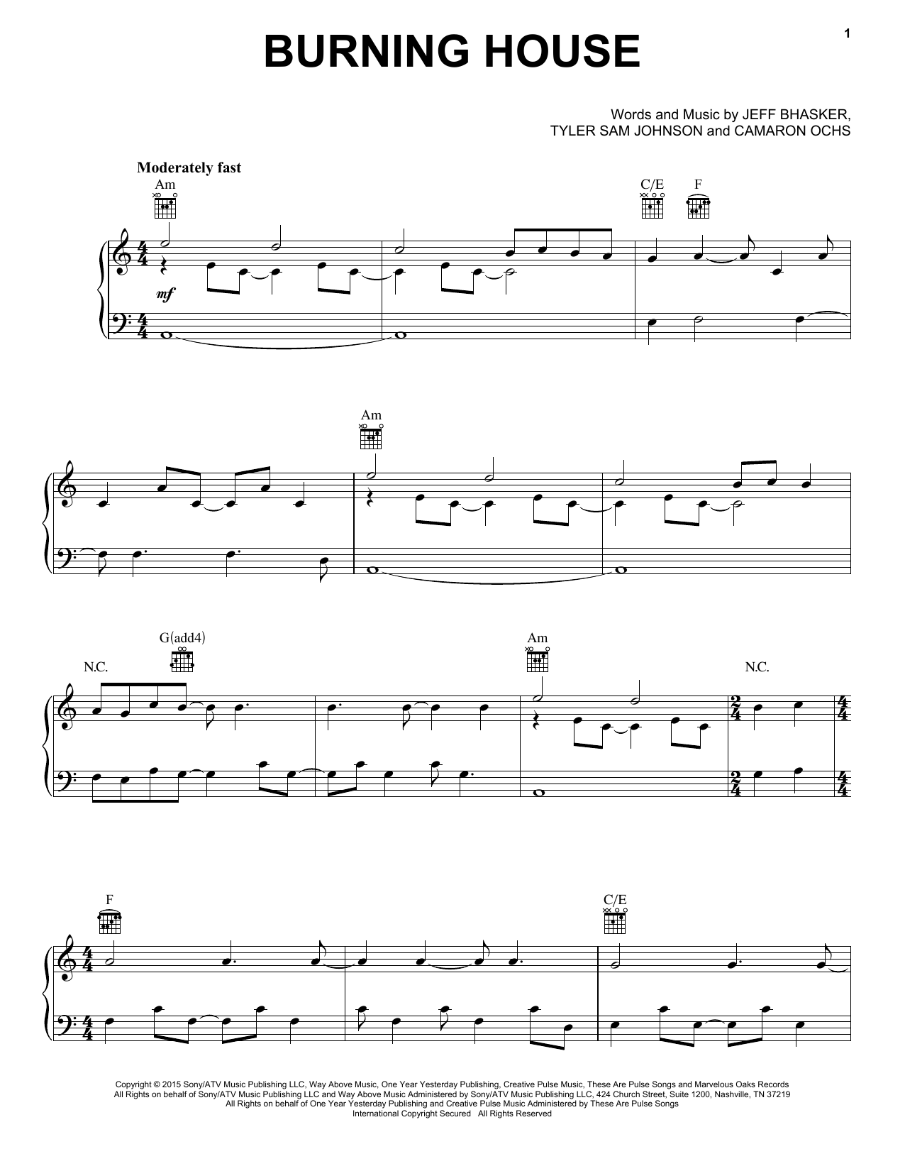 Download or print Cam Burning House sheet music, chords and digital score arranged for Very Easy Piano. This Pop score includes 5 page(s).