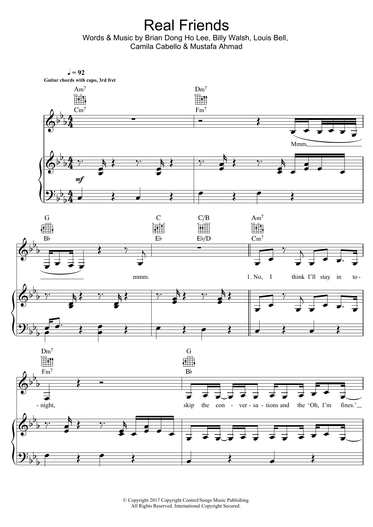 Download or print Camila Cabello Real Friends sheet music, chords and digital score arranged for Piano, Vocal & Guitar Chords. This Pop score includes 7 page(s).