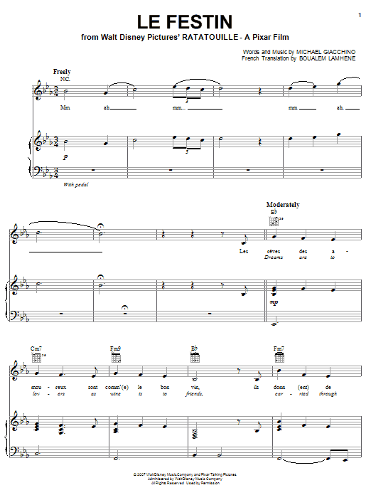 Download or print Camille Le Festin (from Ratatouille) sheet music, chords and digital score arranged for Piano, Vocal & Guitar Chords (Right-Hand Melody). This Children score includes 8 page(s).