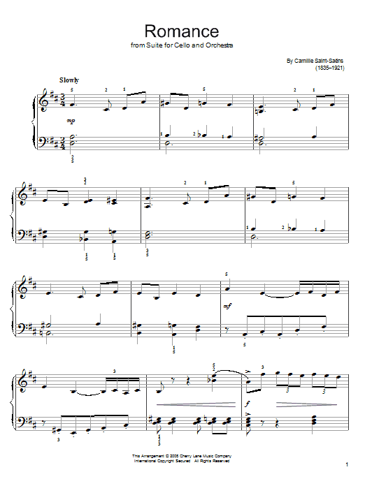 Download or print Camille Saint-Saens Romance sheet music, chords and digital score arranged for Brass Solo. This Classical score includes 12 page(s).