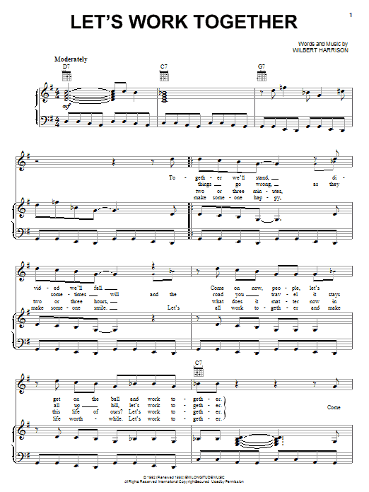 Download or print Canned Heat Let's Work Together sheet music, chords and digital score arranged for Piano, Vocal & Guitar Chords (Right-Hand Melody). This Pop score includes 2 page(s).