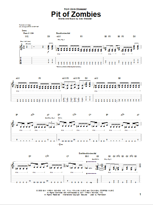 Download or print Cannibal Corpse Pit Of Zombies sheet music, chords and digital score arranged for Guitar Tab. This Pop score includes 12 page(s).