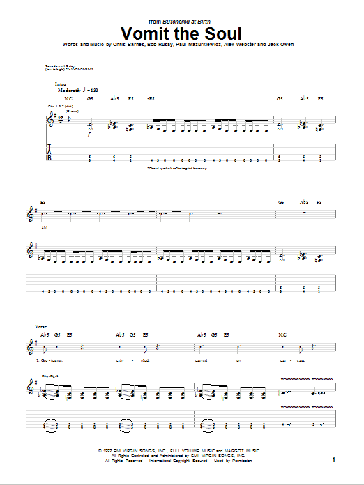 Download or print Cannibal Corpse Vomit The Soul sheet music, chords and digital score arranged for Guitar Tab. This Pop score includes 13 page(s).