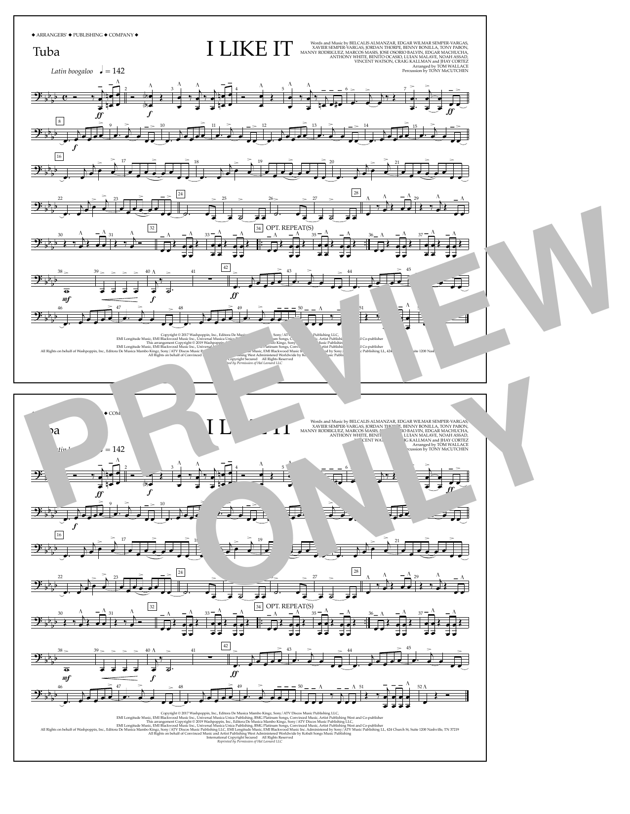 Quick facts I Like It (arr. Tom Wallace) - Tuba about digital sheet music