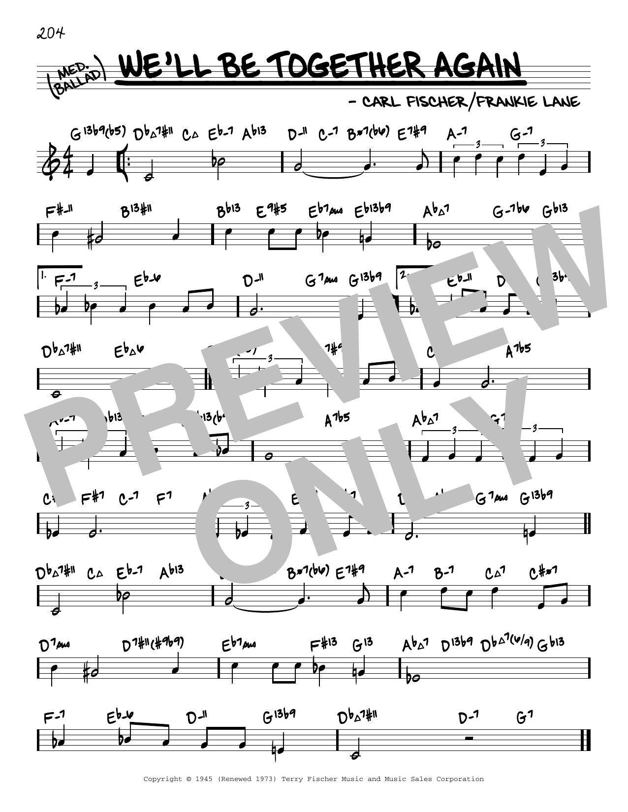 Download or print Carl Fischer We'll Be Together Again (arr. David Hazeltine) sheet music, chords and digital score arranged for Real Book – Enhanced Chords. This Jazz score includes 1 page(s).