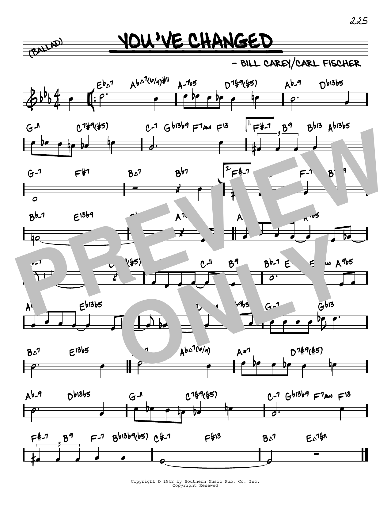 Download or print Carl Fischer You've Changed (arr. David Hazeltine) sheet music, chords and digital score arranged for Real Book – Enhanced Chords. This Jazz score includes 1 page(s).
