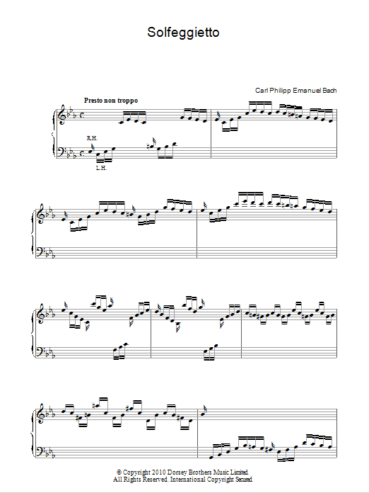 Download or print Carl Philipp Emanuel Bach Solfeggietto sheet music, chords and digital score arranged for Piano Solo. This Classical score includes 3 page(s).