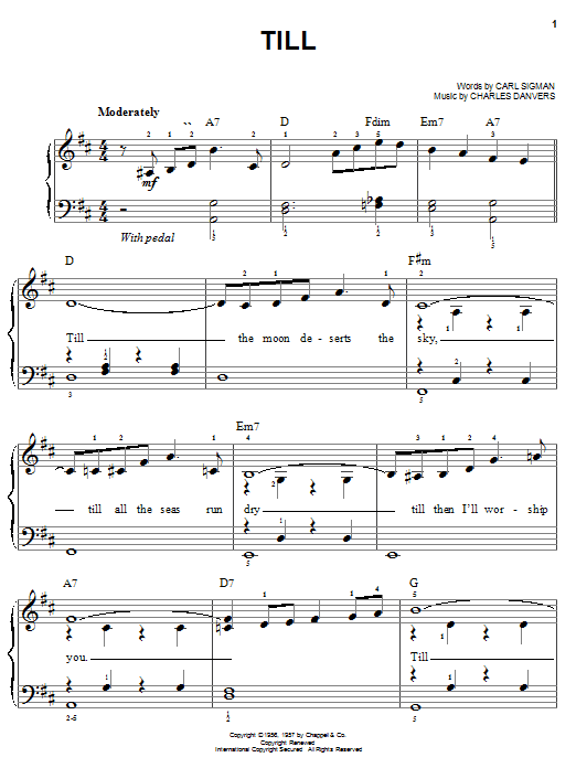 Download or print Carl Sigman Till sheet music, chords and digital score arranged for Easy Piano. This Pop score includes 3 page(s).