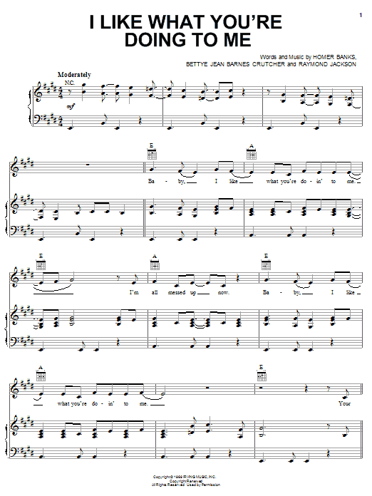 Download or print Carla Thomas I Like What You're Doing To Me sheet music, chords and digital score arranged for Piano, Vocal & Guitar Chords (Right-Hand Melody). This Pop score includes 5 page(s).