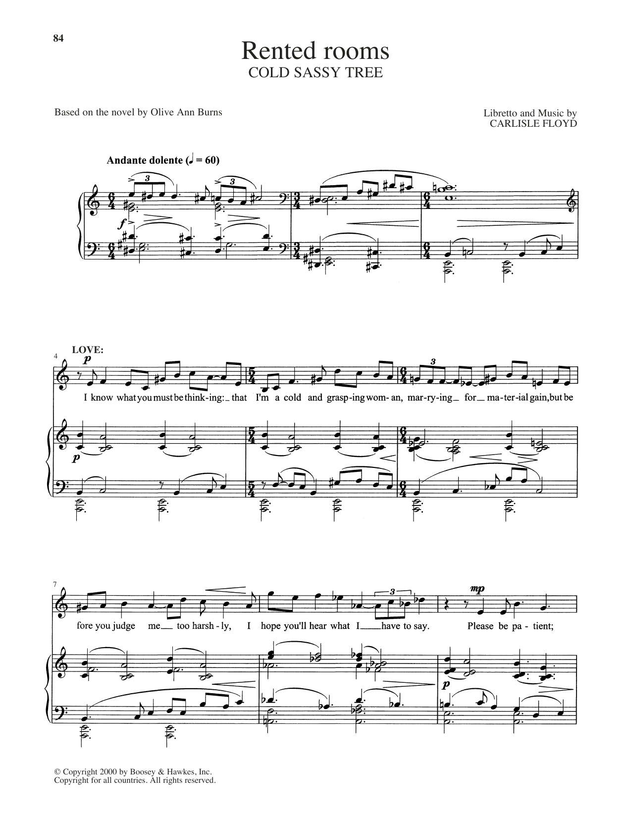 Download or print Carlisle Floyd Rented Rooms sheet music, chords and digital score arranged for Piano & Vocal. This Classical score includes 7 page(s).