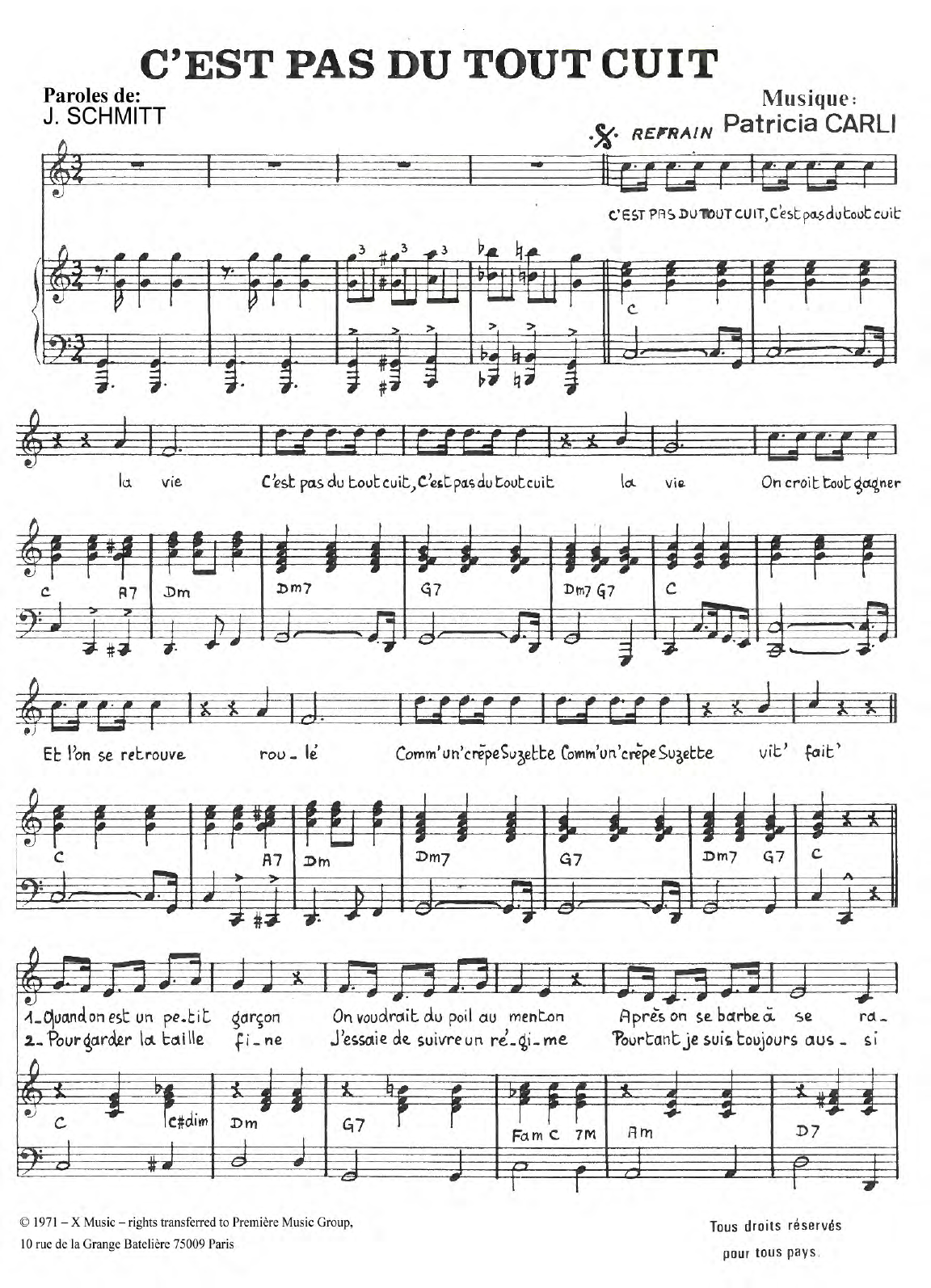 Download or print Carlos C'est Pas Du Tout Cuit sheet music, chords and digital score arranged for Piano & Vocal. This Pop score includes 2 page(s).