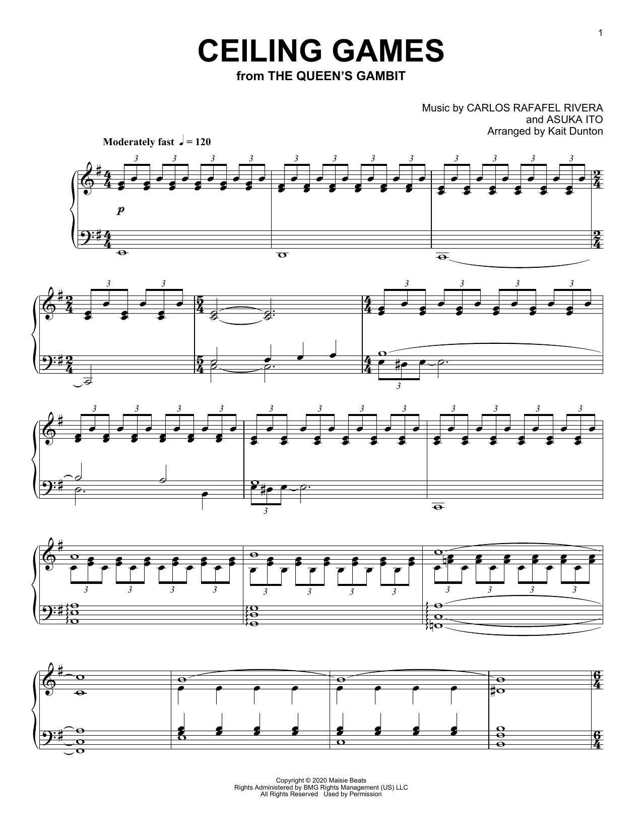 Download or print Carlos Rafael Rivera Ceiling Games (from The Queen's Gambit) sheet music, chords and digital score arranged for Piano Solo. This Film/TV score includes 4 page(s).