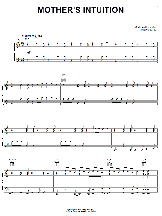 Download or print Carly Simon Mother's Intuition sheet music, chords and digital score arranged for Piano, Vocal & Guitar Chords (Right-Hand Melody). This Children score includes 6 page(s).