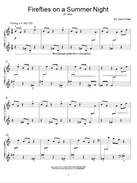 Download or print Carol Klose Fireflies On A Summer Night sheet music, chords and digital score arranged for Educational Piano. This New Age score includes 2 page(s).