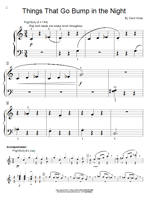 Download or print Carol Klose Things That Go Bump In The Night sheet music, chords and digital score arranged for Educational Piano. This Pop score includes 3 page(s).
