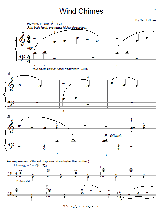 Download or print Carol Klose Wind Chimes sheet music, chords and digital score arranged for Piano Solo. This Instructional score includes 1 page(s).