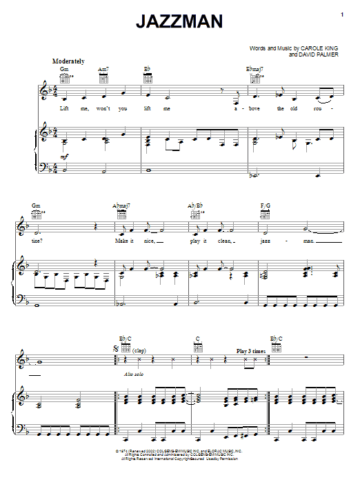 Download or print Carole King Jazzman sheet music, chords and digital score arranged for Piano & Vocal. This Pop score includes 8 page(s).