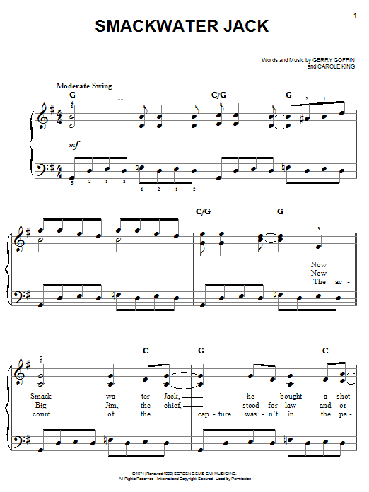 Download or print Carole King Smackwater Jack sheet music, chords and digital score arranged for Easy Piano. This Pop score includes 6 page(s).