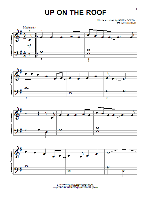 Download or print Carole King Up On The Roof sheet music, chords and digital score arranged for Beginning Piano Solo. This Pop score includes 4 page(s).
