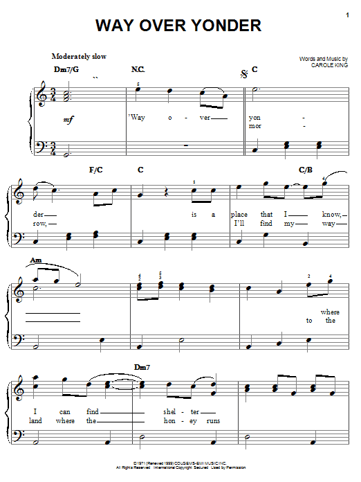 Download or print Carole King Way Over Yonder sheet music, chords and digital score arranged for Keyboard Transcription. This Pop score includes 11 page(s).