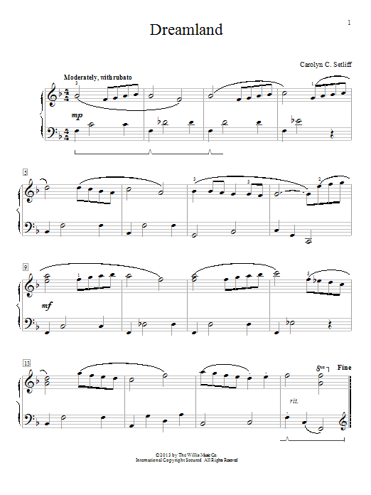 Download or print Carolyn C. Setliff Dreamland sheet music, chords and digital score arranged for Educational Piano. This Classical score includes 2 page(s).