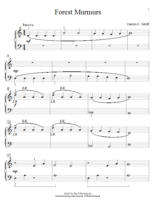 Download or print Carolyn C. Setliff Forest Murmurs sheet music, chords and digital score arranged for Educational Piano. This Children score includes 2 page(s).