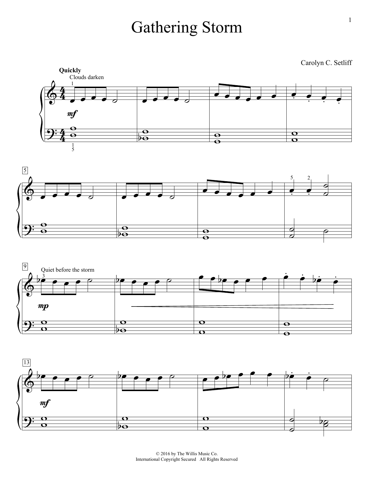 Download or print Carolyn C. Setliff Gathering Storm sheet music, chords and digital score arranged for Educational Piano. This Instructional score includes 2 page(s).