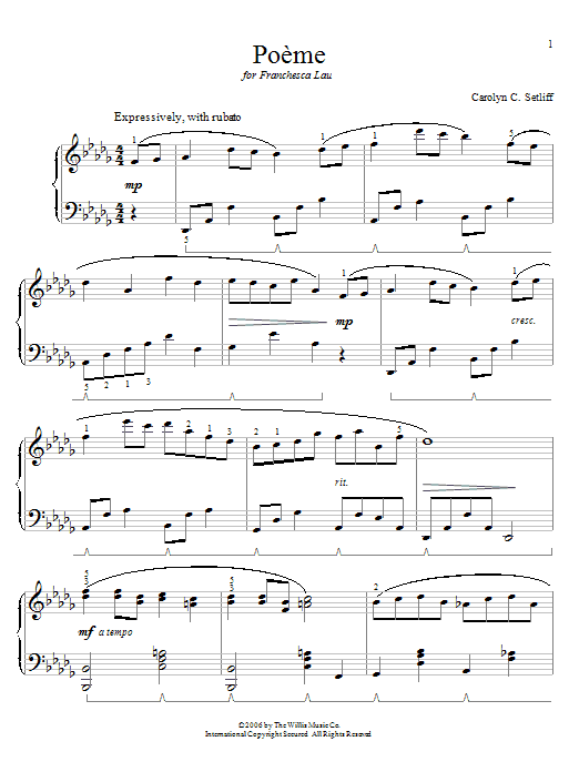 Download or print Carolyn C. Setliff Poeme sheet music, chords and digital score arranged for Educational Piano. This Pop score includes 3 page(s).