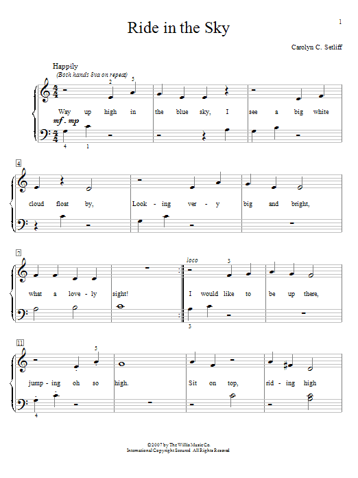 Download or print Carolyn C. Setliff Ride In The Sky sheet music, chords and digital score arranged for Educational Piano. This Children score includes 2 page(s).