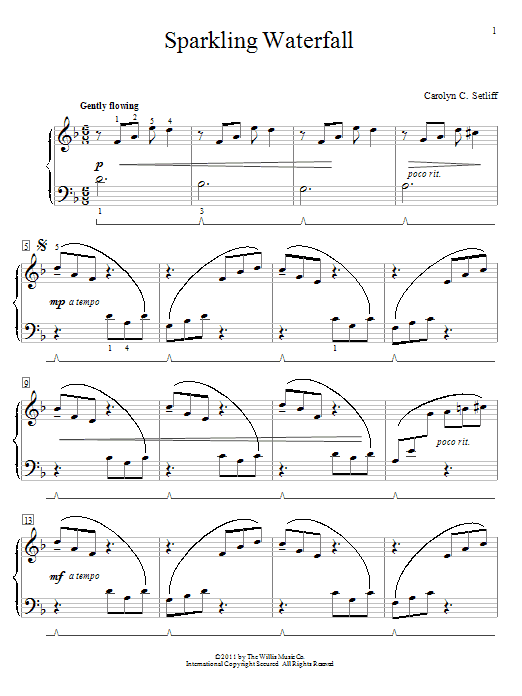 Download or print Carolyn C. Setliff Sparkling Waterfall sheet music, chords and digital score arranged for Educational Piano. This Pop score includes 3 page(s).