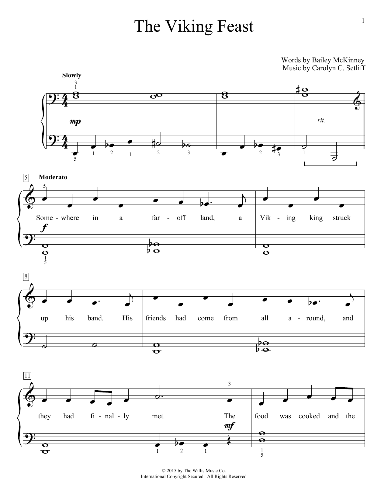 Download or print Carolyn C. Setliff The Viking Feast sheet music, chords and digital score arranged for Educational Piano. This Children score includes 2 page(s).