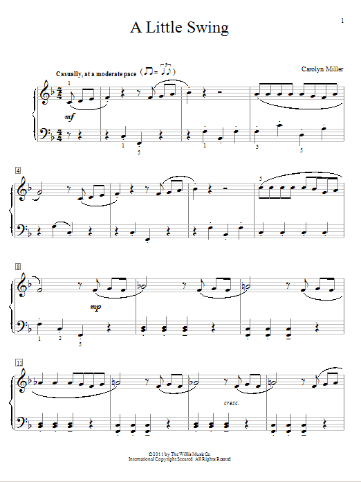 Download or print Carolyn Miller A Little Swing sheet music, chords and digital score arranged for Educational Piano. This Children score includes 2 page(s).