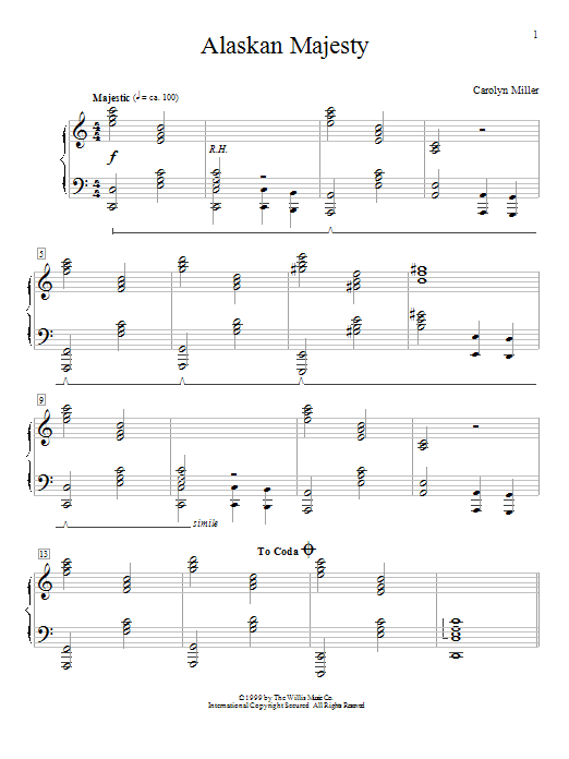 Download or print Carolyn Miller Alaskan Majesty sheet music, chords and digital score arranged for Educational Piano. This Classical score includes 2 page(s).
