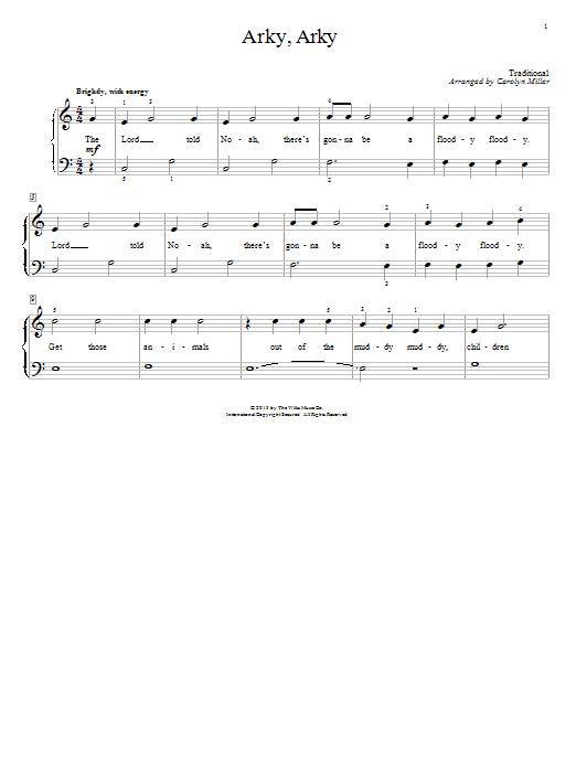 Download or print Carolyn Miller Arky, Arky sheet music, chords and digital score arranged for Educational Piano. This Children score includes 2 page(s).