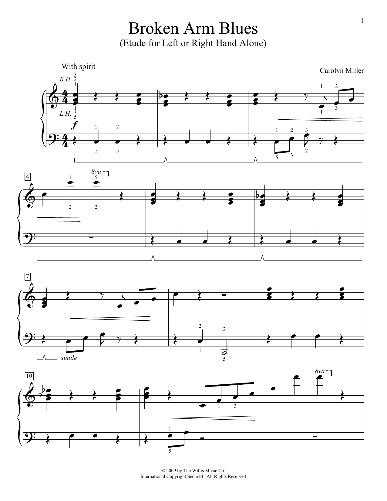 Download or print Carolyn Miller Broken Arm Blues sheet music, chords and digital score arranged for Educational Piano. This Novelty score includes 3 page(s).